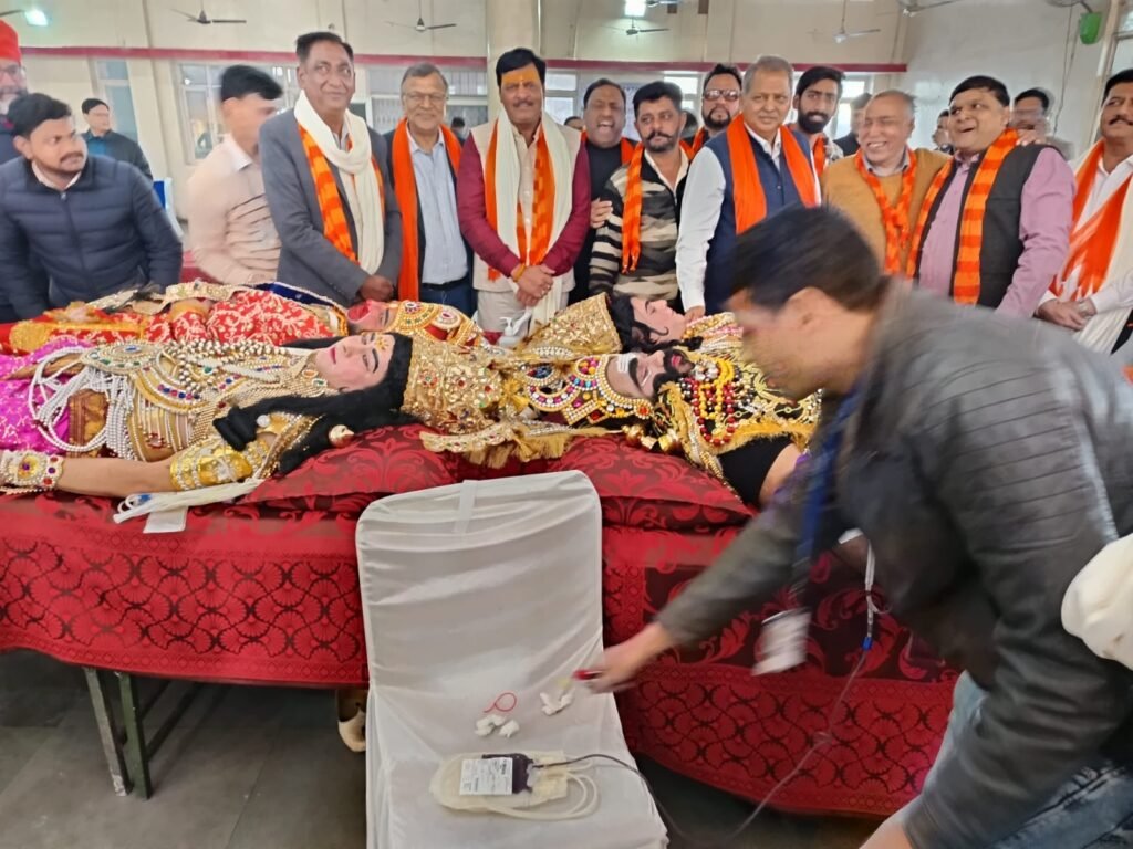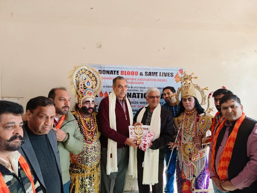 चण्डीगढ़:–प्रभु श्री राम जी के अयोध्या मऺदिर के उद्घाटन के एक वर्ष सऺपुर्ण होने की खुशी में एक विशाल रक्तदान शिविर का आयोजन किया गया। शिव मानस मंदिर इंडस्ट्रियल एरिया फेज 2 में चंडीगढ़ फर्नीचर एसोसिएशन (रजि.) और पी जी आई के आपसी सहयोग से आयोजित इस रक्तदान शिविर में लोगों ने बढ़ चढ़ कर भाग लिया। रक्तदान शिविर की मुख्य विशेषता चंडीगढ़ रामलीला क्लब सेक्टर 22 के प्रमुख पात्रों श्री राम, लक्ष्मण, हनुमान और रावण के किरदार निभा रहे कलाकारों ने भी रक्तदान कर एक अनूठी मिसाल पेश की। रक्तदान शिविर में 150 से अधिक रक्तदान यूनिट एकत्रित हुए। इस अवसर पर भाजपा चंडीगढ़ इकाई के प्रधान जतिंदर मल्होत्रा, पूर्व प्रधान वरिष्ठ नेता संजय टण्डन सहित अन्य भाजपा नेता भी उपस्थित रहे। चंडीगढ़ फर्नीचर एसोसिएशन के प्रधान नरेश कुमार, राहुल गुप्ता, भरत भूषण, अजय कांसल, चेयरमैन सरदार चरणजीत सिंह, सचिव नरेश बंसल, अमरनाथ बंसल, यज्ञराज बंसल , सुनील बंसल, कपिल कामरा, अजय गुप्ता, सचिन जैन, गुलाब जैन, शीशपाल गर्ग और रोहित जिंदल इत्यादि भी मौजूद रहे।