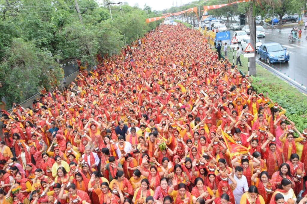 कलश यात्रा शिव मंदिर सेक्टर 5 में स्थित फायर ब्रिगेड स्टेशन से शुरू होकर कथा स्थल पर पहुंची। श्रद्धालुओं का उत्साह देखते ही बनता था। कलश यात्रा के लिए महिलाओं की ड्यूटी लगाई गई हुई थी। कलश यात्रा की संयोजक डॉ. भावना की देखरेख में कलश यात्रा सुचारू ढंग से निकाली गई। इस कलश यात्रा में रिकॉर्ड 3500 से अधिक महिलाओं ने भाग लिया। सभी महिलाओं को कलश, नारियल और चुन्नी संस्था की तरफ से दी गई।