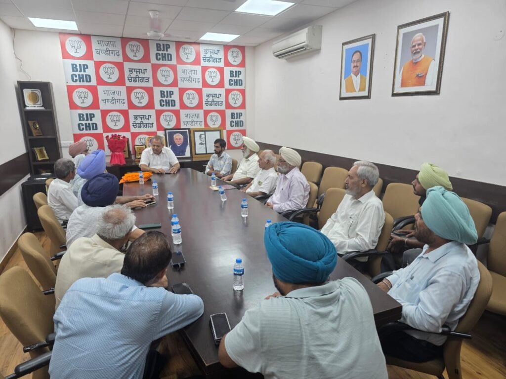 चंडीगढ़। सेक्टर 44 स्थित शहीद उधम सिंह मेमोरियल भवन सोसाइटी के नव-निर्वाचित पदाधिकारियों — जो कि कंबोज समुदाय से संबंध रखते हैं — ने भारतीय जनता पार्टी चंडीगढ़ के प्रदेश अध्यक्ष जितेन्द्र पाल मल्होत्रा से शिष्टाचार भेंट की।