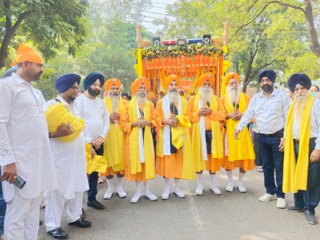 नगर कीर्तन में जैसे ही श्री गुरु ग्रंथ साहिब का प्रकाश सिर पर लेकर गुरुद्वारा साहिब के भाई जी ने पालकी में विराजमान किया। वैसे संगतों में जोश आ गया और “वाहेगुरु जी का खालसा वाहेगुरु जी की फतेह” के जयकारे लगने शुरू हो गए। तत्पश्चात पूरे रीतिरिवाजों और अरदास के साथ नगर कीर्तन शुरू किया गया।सबसे आगे जीप पर नगाड़ा रखा हुआ था जो नगर कीर्तन के आने का पैगाम दे रहा था। इनके पीछे बैंड थे जो गुरबानी के शब्द गायन कर रहे थे। नगर कीर्तन में शामिल विभिन्न स्कूल के छात्र-छात्राएं भी शब्द कीर्तन का गायन कर रहे थे। रागी जत्थे भी शब्द गायन कर नगर कीर्तन की शान बढ़ा रहे थे। पांच प्यारे साहिब नगर कीर्तन की शोभा बढ़ा रहे थे। इनके उपरांत सुंदर सजी पालकी साहिब में श्री गुरु ग्रंथ साहिब जी की सवारी सुशोभित थी जिसकी सेवा सिंह साहिब कर रहे थे। नगर कीर्तन में स्त्री सत्संग का जत्था गुरबानी के शब्द गायन कर रहा था। वहीं, सेवादार सड़क की सफाई करते हुऐ चल रहे थे।