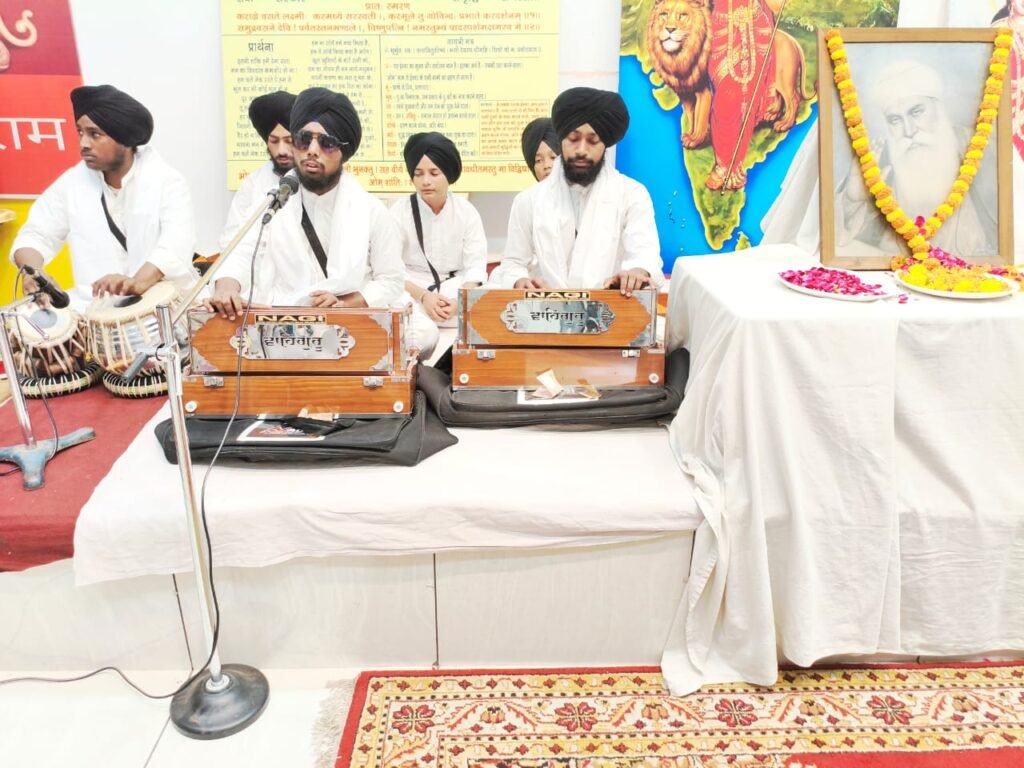 आये हुए सभी कार्यकर्ताओं ने गुरु नानक देव जी के प्रकाश दिवस पर उन्हें श्रद्धासुमन अर्पित किये, फिर प्रार्थना (इतनी शक्ति हमें देना…) हुई, तत्पश्चात् रविन्द्र दीदी ने आये हुए अतिथियों का परिचय कराया।