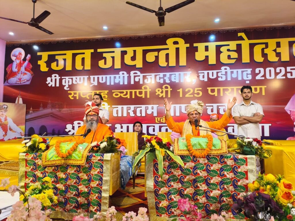 चंडीगढ़ ( )प्रणामी परमार्थ सेवा ट्रस्ट एवं श्री कृष्ण प्रणामी मन्दिर सभा, मलीया मार्ग, चण्डीगढ़ द्वारा श्री कृष्ण प्रणामी निजदरबार का 25वीं पाटोत्सव (वार्षिक उत्सव) 125 पारायण श्रीमद‌भागवत प्रवचन, सप्ताहव्यापी महोत्सव सनातन संत सम्मेलन, सवा लाख निजनाम जप एवं विभिन्न कार्यक्रम के साथ श्री कृष्ण प्रणामी मन्दिर मलीया मार्ग, चण्डीगढ़ मे रजत जयन्ती महोत्सव 3-9 नवम्बर तक प्रतिदिन दोपहर 3 बजे से 6 बजे तक श्रीमद्‌भागवत कथा का भव्य कार्यकर्म हो रहे है