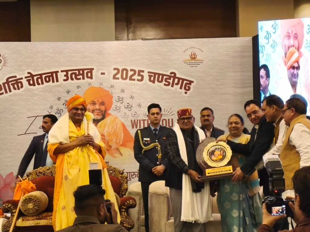 चंडीगढ़/ ज़ीरकपुर ( )विश्वधर्म चेतना मंच, चण्डीगढ़ केन्द्र द्वारा शक्ति चेतना उत्सव चण्डीगढ़ ज़ीरकपुर मे दिव्य सान्निध्य ‘सिद्ध गुरुवर’ सिद्धेश्वर ब्रह्मर्षि गुरुदेव ‘जिनकी एक दृष्टि जीवन की दशा व दिशा दोनों बदल देती है’ के सानिध्य मे ज़ीरकपुर के पार्क प्लाजा मे कार्यक्रम हुआ