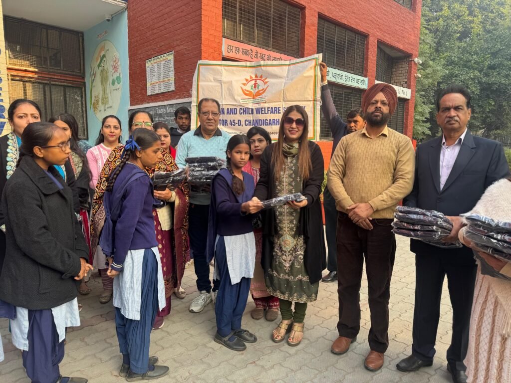 वूमेन एंड चाइल्ड वेलफेयर सोसाइटी, सेक्टर 45-डी, चंडीगढ़ संस्था की संस्थापक एवं अध्यक्षा पूजा बक्शी के नेतृत्व में आज समाज सेवा से जुड़े एक विशेष कार्यक्रम का आयोजन किया गया, जिसमें सरकारी हाई स्कूल, सेक्टर 46-सी, चंडीगढ़ के 50 ज़रूरतमंद विद्यार्थियों को गर्म स्वेटर वितरित किए गए।