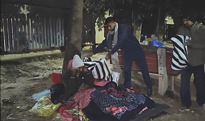 युवा नीतीश ने दोस्तों के साथ मिलकर बांटी गरमाहट : GMCH 32 के पार्क में सर्दी से लड़ रहे लोगों को बाँटा कंबल….