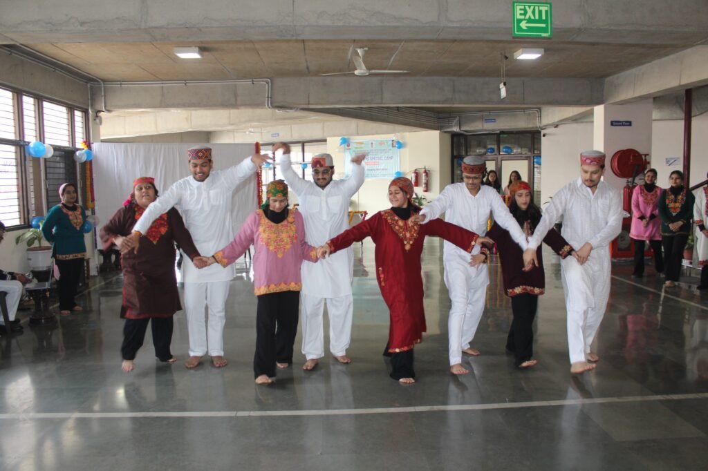 A major attraction of the ceremony was the cultural and skill-based performances presented by the NSS volunteers. These included a Yoga demonstration featuring Surya Namaskar, self-defence demonstrations highlighting essential techniques against eve-teasing and bullying, and a Nukkad Natak focusing on the critical issue of unemployment. The cultural segment was further enriched by vibrant folk dances of Himachal Pradesh, Gujarat, and Punjab (Bhangra), along with energetic performances on popular Bollywood songs, showcasing the creativity and confidence of the volunteers. The vote of thanks was delivered by Mr. Vinayak, President, NSS Boys Unit.