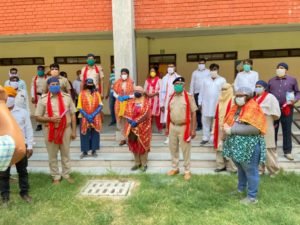इस मौके पर मलोया पुलिस स्टेशन के एसएचओ पलक गोयल समेत सभी पुलिस कर्मचारियों को सम्मानित भी किया गया। कोरोना काल में हमारे लिए लड़ रहे इन योद्धाओं को गुलाब का फूल देखकर स्वागत किया गया और उनके सम्मान में तालियां बजाईं गई। इस मौके पर जीरकपुर के एक प्राइवेट अस्पताल के डॉक्टर भी पहुंचे, जिन्होंने महिलाओं को कोरोना से बचने के उपायों के बारे में बताया। उन्होंने यह भी जानकारी दी कि कैसे वह छोटे घर में भी स्वच्छता व सोशल डिस्टेंसिंग का पालन करते हुए खुद और अपने परिवार की रक्षा कर सकते हैं। उन्होंने होम्योपैथिक दवाइंयों की जानकारी भी दी। इस मौके पर एनजीओ परिवर्तन के प्रेजिडेंट रेनुका शर्मा, वाइस प्रेजिडेंट अनु बंसल समेत अन्य पदाधिकारी उपस्थित रहे।