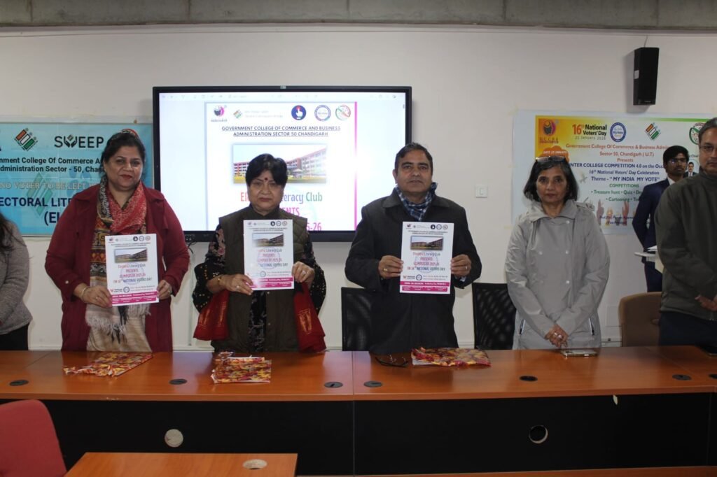गवर्नमेंट कॉलेज ऑफ कॉमर्स एंड बिज़नेस एडमिनिस्ट्रेशन (GCCBA), सेक्टर-50, चंडीगढ़ के इलेक्टोरल लिटरेसी क्लब (ELC) द्वारा युवाओं में निर्वाचन जागरूकता एवं लोकतांत्रिक मूल्यों को बढ़ावा देने के उद्देश्य से 16वें राष्ट्रीय मतदाता दिवस के उपलक्ष्य में इंटर-कॉलेज प्रतियोगिता 4.0 का सफल आयोजन किया गया।