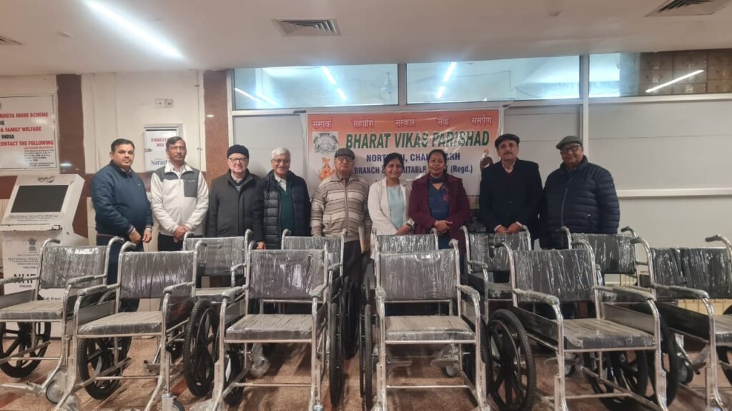भारत विकास परिषद नॉर्थ-2 चैरिटेबल ट्रस्ट द्वारा सेवा परियोजना के तहत चंडीगढ़ के पीजीआई एडवांस्ड कार्डियोलॉजी सेंटर में मरीजो के लिए 11 उच्च गुणवत्ता वाली व्हीलचेयर दान कीं। इस अवसर पर चिकित्सा अधीक्षक डॉ. विपिन कौशल और सेंटर के कर्मचारी सहित परिषद के सदस्य और दानदाता भी उपस्थित रहे परिषद अध्यक्ष ने बताया की यह वर्ष की सातवीं परियोजना जिसमें अब तक 4 स्कूलों के 100 छात्रों को पुस्तकें/स्टेशनरी का वितरण एवं दो जरूरतमंद लड़कियों का विवाह और जरूरतमंद मरीजों को दवाइयों का वितरण और बीवीपी चैरिटेबल सेंटर, इंदिरा हॉलिडे होम, सेक्टर-24बी, चंडीगढ़ में शारीरिक रूप से अक्षम/वरिष्ठ मरीजों के लिए चलती-फिरती व्हीलचेयर की व्यवस्था परिषद की और से की गई