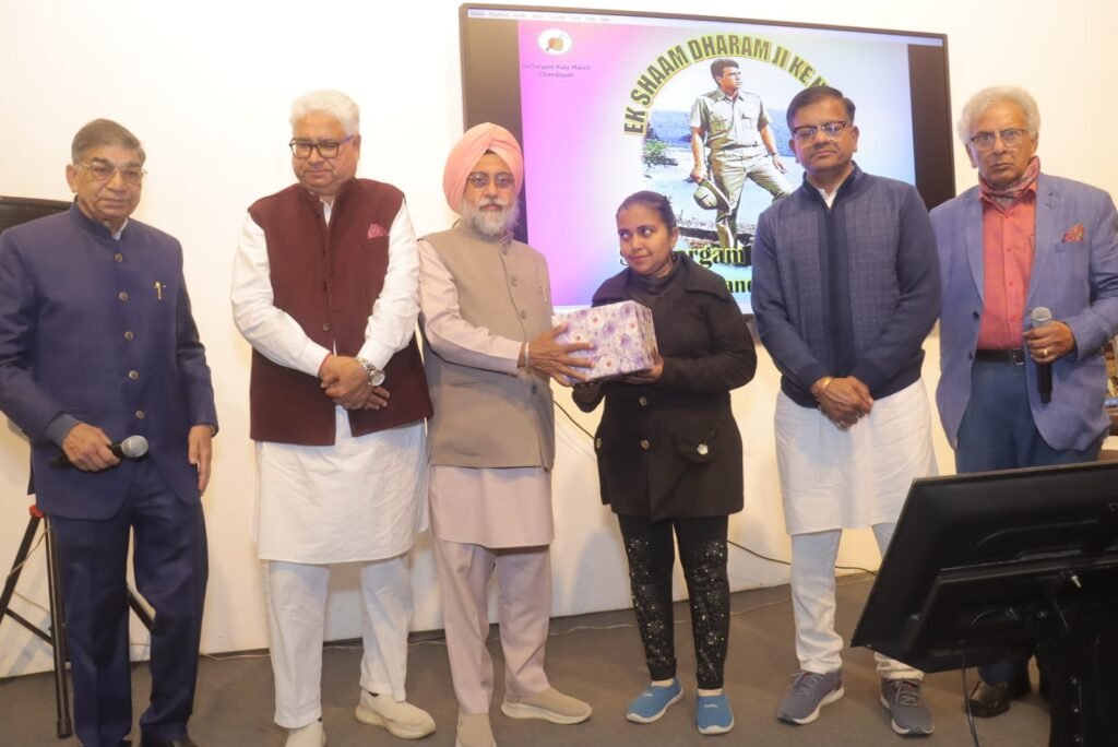 सुर-सरगम कला मंच चंडीगढ़ द्वारा जाने माने महान अभिनेता स्वर्गीय धर्मेंद्र जी की याद में श्रद्धांजली के तौर पर एक संगीत संध्या का आयोजन गौरमैंट आर्ट गैलरी सैक्टर 10 चंडीगढ़ में किया गया। इस कार्यक्रम में धर्मेन्द्र जी की याद में सबसे पहले २ मिनट का मौन रखा गया। उसके बाद धरम जी पर फिल्माये गये गीतों से उन्हें याद किया गया। काबिले जिक्र है कि इस कार्यक्रम में धर्मेंद्र जी के संबंध में क्विज भी रखी गई थी, सदाबहार गीतों के बीच-बीच में धरम जी से सम्बंधित क्विज मास्टर किशोर कुमार शर्मा द्वारा सवाल जवाब भी किए गए और हर सही उत्तर पर इनाम भी दिए गए। धर्मेंद्र जी पर कई लोगों ने कार्यक्रम आयोजित किए लेकिन यहां कुछ अलग और अनूठा भी दिखाया गया। गीतों के इलावा इस कार्यक्रम का मुख्य आकर्षण धरम जी की फिल्में से दिखाए गए चुनिंदा सीन रहे, जिसमें उनकी अदाकारी के बेहतरीन सीन पेश किए गए। सनद रहे की सुर सरगम कला मंच “बेटी बचाओ बेटी पढ़ाओ उसे हुनरमंद बनाओ और आगे बढ़ाओ” के नारे को सार्थक करते हुए कार्यक्रम में पांच बेटियों को विशेष पुरस्कार भी दिए गए। इस कार्यक्रम में मुख्य अतिथि के रूप में डेरा बस्सी के मशहूर समाज सेवी श्री गुरदर्शन सिंह सैनी मैजूद रहें, इनके साथ भाजपा के मोहाली क्षेत्र के उपाध्यक्ष अनुज अग्रवाल एवं यादगार एक रफ़ी सैसाईटी के अध्यक्ष बी. डी. शर्मा विशेष अतिथि के रुप में उपस्थित रहे। मशहूर लेखक और एक्टर डॉ मंजीत बल ने गाना गाकर अपनी उपस्थिति दर्ज करवाई।कार्यक्रम में पहली बार शामिल हुई शबनम आयुर्वेद से डॉक्टर शबनम और उनके पति डॉक्टर साबिर ने यहां आने पर आभार व्यक्त किया।
