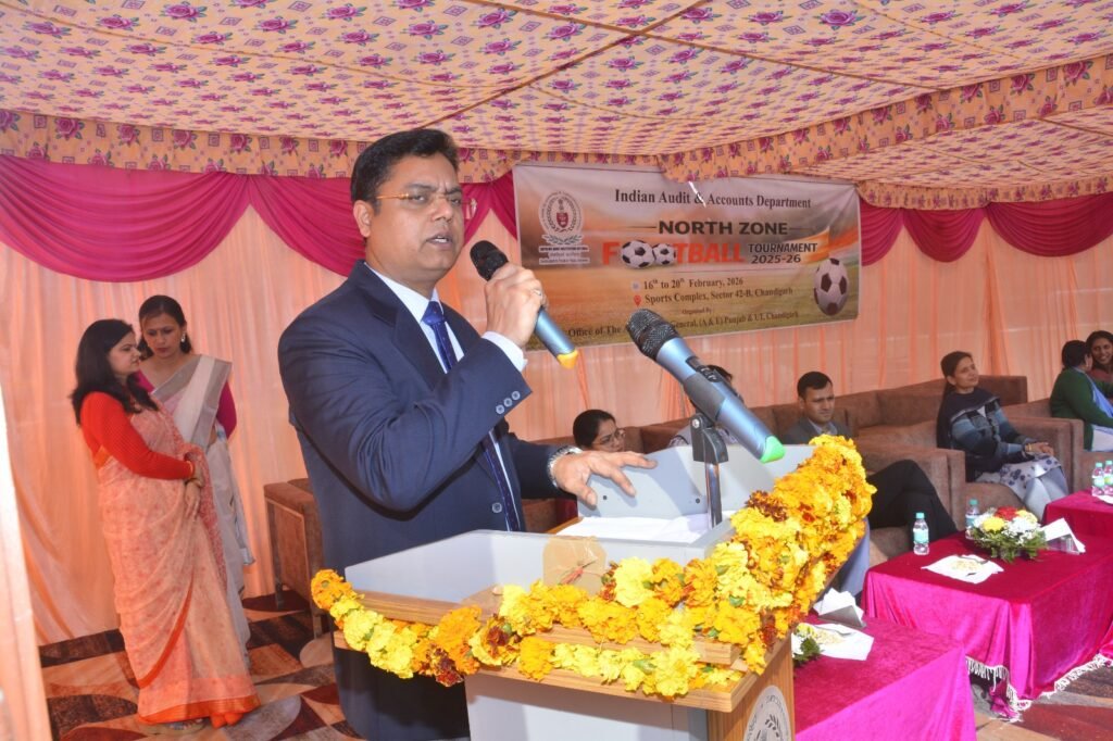 स्पोर्ट्स काम्प्लेक्स, सेक्टर 42 स्थित खेल मैदान में महालेखाकार (लेखा व हक़दारी, पंजाब एवं यूटी चंडीगढ़ की ओर से आयोजित आईए एंड एडी नार्थ जोन फुटबॉल टूर्नामेंट 2025-2026 का मोहम्मद तैयब, आईएएस, सचिव जेल विभाग, पंजाब सरकार ने विधिवत उद्घाटन किया। खिलाड़ियों का उत्साह बढ़ाते हुए इन्होंने कहा कि इस प्रकार के आयोजनों को देखकर उन्हें प्रसन्नता होती है।इस आयोजन की विधिवत जानकारी देते हुए तृप्ति गुप्ता महालेखाकार ने बताया कि इस टूर्नामेंट में इंडियन ऑडिट एंड अकाउंट्स डिपार्टमेंट की कुल 7 टीमें खेल रही हैं। इनमें पंजाब, हरियाणा, दिल्ली, हिमाचल प्रदेश, उत्तर प्रदेश, उत्तराखंड और जम्मू-कश्मीर की टीमें शामिल हैं। सुखनंदन सभरवाल, अप महालेखाकार ने भी खिलाड़ियों के मनोबल को बढ़ाने के लिए इस प्रकार के आयोजनों को प्रमोट करने की बातें कहीं। मनीषा तूर, उप महालेखाकार ने आईए एंड एडी के इस नार्थ जोन फुटबॉल टूर्नामेंट पर प्रकाश डालते हुए कहा कि यह पाँच दिवसीय टूर्नामेंट बहुत रोमांचक होने वाला है।