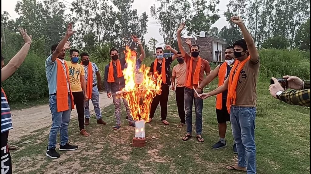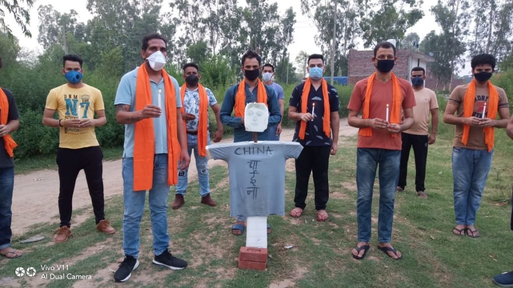 (आनंद गोयल) आज डेराबस्सी बरवाला रोड पर शिव सेना पंजाब द्वारा एक रोष प्रदर्शन किया गया, जोकि चाइना के खिलाफ उसकी कायराना हरकत पर आधारित था। रोष प्रदर्शन में सभी शहीद जवानों को मोमबत्ती जलाकर श्रद्धांजलि दी गई व उन्हीं मोमबत्तियां द्वारा चीन के राष्ट्रपति का पुतला फूंका गया, प्रदर्शन में चाइना के खिलाफ जमकर नारेबाजी की गई यह प्रदर्शन शिव सेना पंजाब के राष्ट्रीय प्रमुख श्री संजीव घनौली जी व जिला प्रभारी मोहाली नरोत्तम भाटिया उर्फ रॉकी जी के नेतृत्व में किया गया।