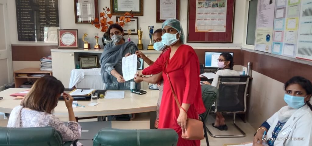 जिला महासचिव वंदना और सीटू प्रधान रमा द्वारा सीएमओ मैडम को हड़ताल का नोटिस दिया गया।