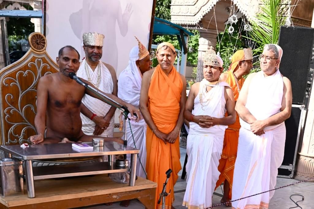 श्री दिगम्बर जैन मंदिर सेक्टर 27B चण्डीगढ़ में धर्म सभा को संबोधित करते हुए आचार्य श्री 108 सुबल सागर जी महाराज ने कहा कि इस संसार में मनुष्य का बार-बार जन्म-मरण हो रहा है तो क्या कारण है इस जन्म मरण रूपी दुःख को प्राप्त करने का, तो गुरूदेव कहते हैं जो जैसा कर्म करता है उसको उसी कर्म रूपी फल प्राप्त होता हैं, अर्थात् जैसी करनी होगी, वैसी भरनी होगी। इस संसार में सबसे ईमानदार अगर कोई है तो वह है हमारे कर्म। इस कर्म में कोई फेर बदल नहीं होता है इसलिए हमें हमेशा कर्म करते समय हमेशा सावधान होना चाहिए, हमे अपने अन्तरंग में एक गाँठ बांध कर रख लेनी चाहिए, कि अगर हमें हमेशा स्वस्थ्य और सुखी रहना है तो हमें काम भी ऐसी ही करने होंगे जिससे हमें व दूसरों को सुख-शांति महसूस हो।