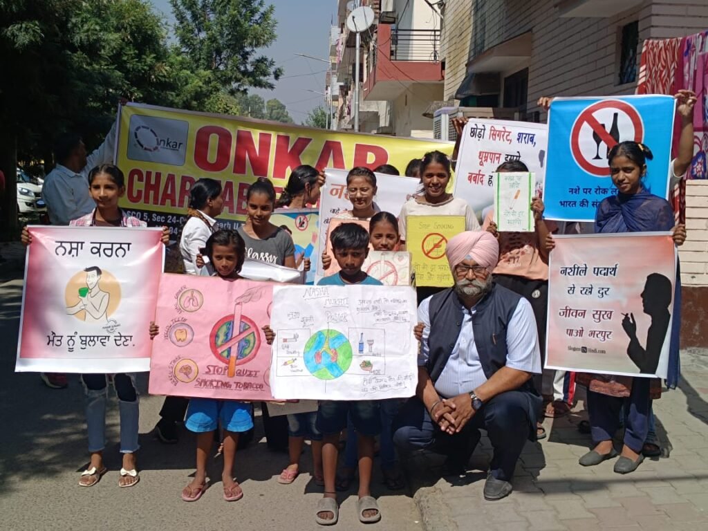चंडीगढ़:- नशा मुक्त समाज के अंतर्गत समाजसेवी संस्था ओंकार चैरिटेबल फाउंडेशन द्वारा युवाओं व बच्चों को तंबाकू, गुटखा व नशीले पदार्थ के सेवन के दुष्प्रभाव बारे में जागरूक करने के उद्देश्य से एक जागरूकता अभियान चलाया गया। ओंकार चैरिटेबल फाउंडेशन के चेयरमैन रविन्द्र सिंह बिल्ला के मार्गदर्शन में यह अभियान सेक्टर 25 भास्कर कॉलोनी में रैली के माध्यम से चलाया गया। इस नाश मुक्त समाज रैली में फाउंडेशन के सदस्यों निशा राणा, मीनाक्षी और स्वर्ण सहित कॉलोनी के बच्चों ने हिस्सा लिया और नारेबाजी करते हुए लोगो को नशों से दूर रहने के लिए प्रेरित किया।
