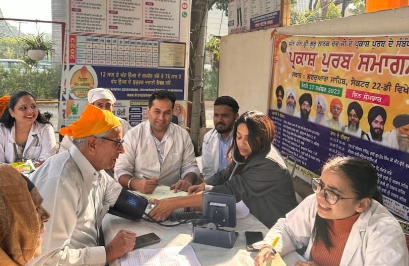 गुरुद्वारा साहिब सेक्टर 46 चंडीगढ़ में श्री धन्वंतरि आयुर्वेदिक चिकित्सा केंद्र के चिकित्सकों द्वारा डॉक्टर उर्वी कुलकर्णी के नेतृत्व में श्री गुरु नानक देव जी की जयंती के उपलक्ष में वशिष्ठ आयुर्वेदिक चिकित्सा शिविर विशिष्ट एवं एमिल फार्मास्यूटिकल के सौजन्य से लगाया गया, जिसमें तकरीबन 150 मरीजों को मुफ्त दवाई बांटी गई।